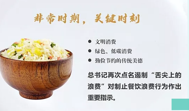 2020年8月1日 ,中共中央总书记、国家主席、中央军委主席习近平近日对制止餐饮浪费行为作出重要指示。他指出,餐饮浪费现象,触目惊心、令人痛心!“谁知盘中餐,粒粒皆辛苦。”习近平总书记一直高度重视粮食安全和提倡“厉行节约、反对浪费”的社会风尚,多次强调要制止餐饮浪费行为。倡导文明就餐,请珍惜粮食,杜绝浪费。