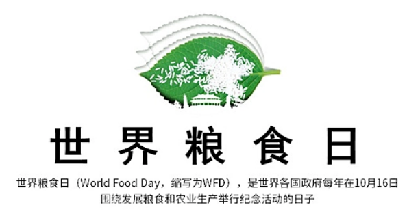 世界粮食日(World Food Day)起始于1981年10月16日,是世界各国政府每年在10月16日围绕发展粮食和农业生产举行纪念活动的日子。其宗旨在于唤起全世界对发展粮食和农业生产的高度重视。这是要我们要时刻谨记:一粥一饭,当思来之不易;半丝半缕,恒念物力维艰。
